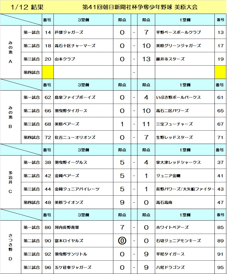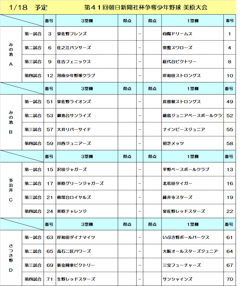 2026年1月13日 / 最終更新日 : 2026年1月13日 sakaimihara-jimukyoku お知らせ 第41回朝日新聞社杯争奪少年軟式野球美原大会(2日間) 大会2日目も天候には恵まれて無事に終了しました。 112トーナメントダウンロード 112結果ダウンロード 118予定ダウンロード Follow me! FacebooktwitterHatenaPocket コメントを残す コメントをキャンセルメールアドレスが公開されることはありません。 ※ が付いている欄は必須項目ですコメント ※ 名前 ※ メール ※ サイト 次回のコメントで使用するためブラウザーに自分の名前、メールアドレス、サイトを保存する。