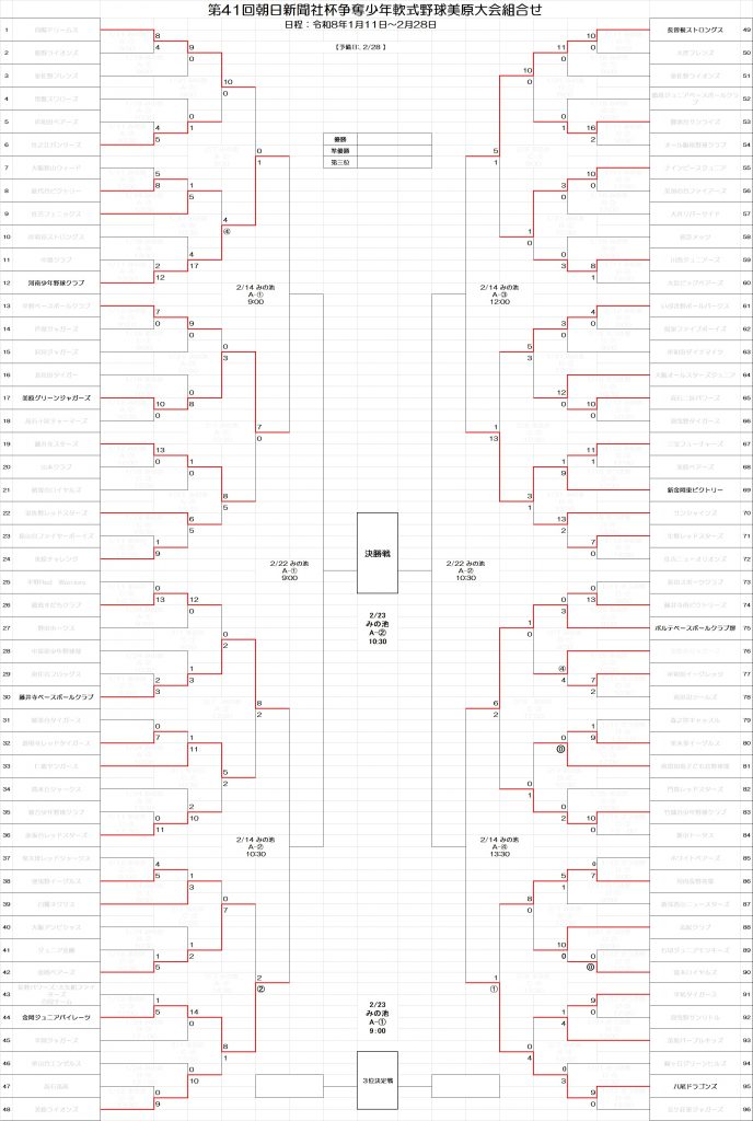 2026年2月9日 / 最終更新日 : 2026年2月9日 sakaimihara-jimukyoku お知らせ 第41回朝日新聞社杯争奪少年軟式野球美原大会(9日目) 雪がちらつく8日で極寒でしたがベスト8が決定しました。 208結果ダウンロード 214予定ダウンロード 208トーナメントダウンロード Follow me! FacebooktwitterHatenaPocket コメントを残す コメントをキャンセルメールアドレスが公開されることはありません。 ※ が付いている欄は必須項目ですコメント ※ 名前 ※ メール ※ サイト 次回のコメントで使用するためブラウザーに自分の名前、メールアドレス、サイトを保存する。